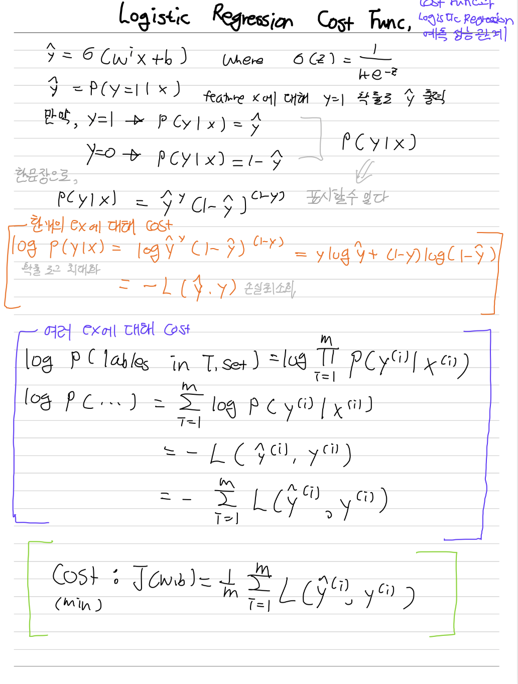 Logistic Regression์ Cost ๋ฅผ ์ค์ด๋ฉด, ๋ชจ๋ธ์ ์ต๋ likelihood์ ๋๋ฌํ๋ ์ด์