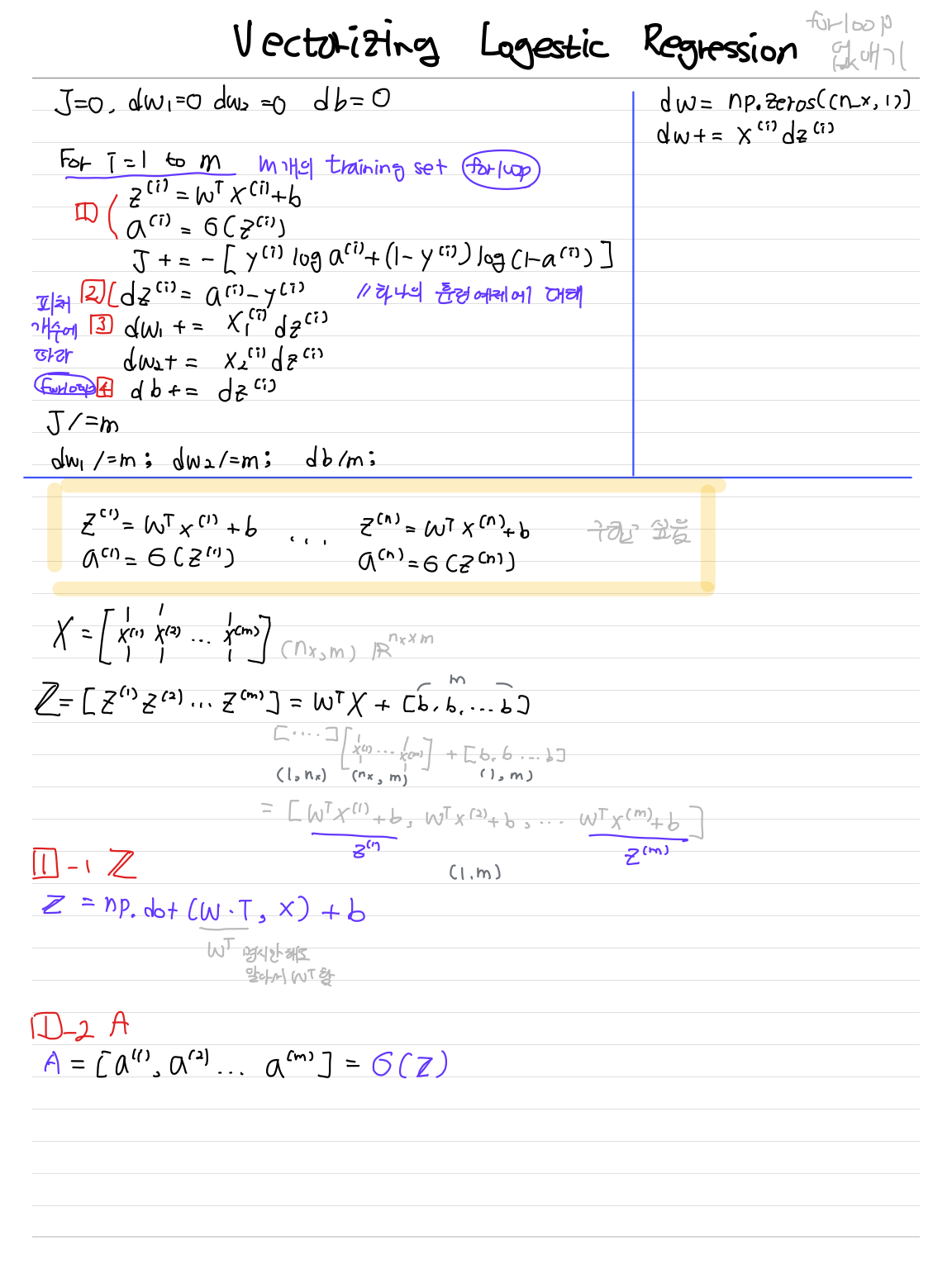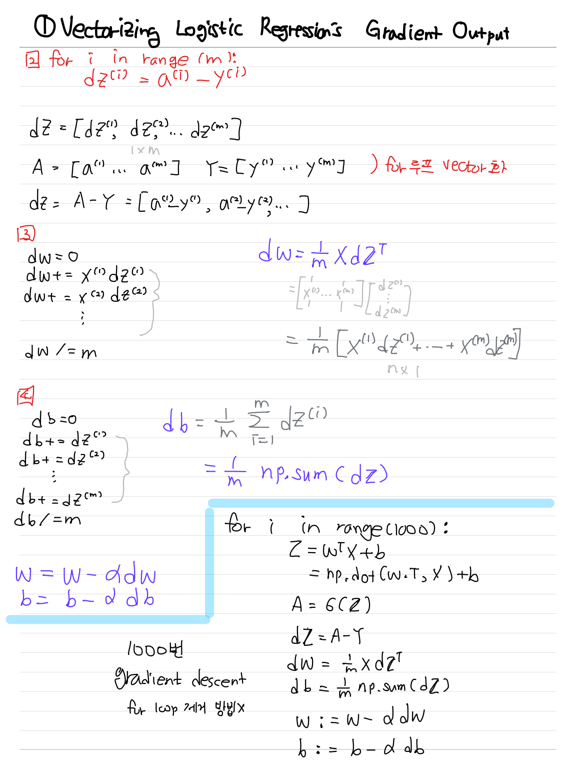 [Coursera1] Neural-Networks-Deep-Learning : Logistic Regression - Loss /Cost Function, BackPropagation(w,b), Vectorization