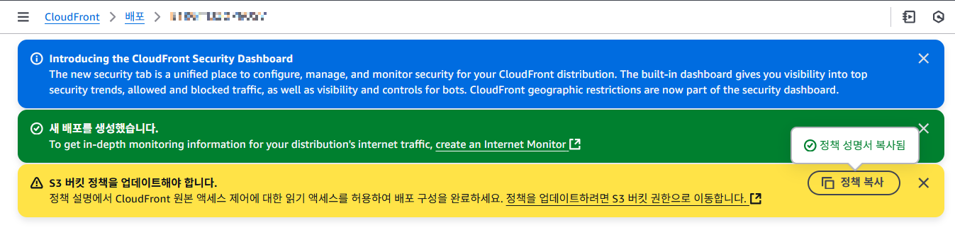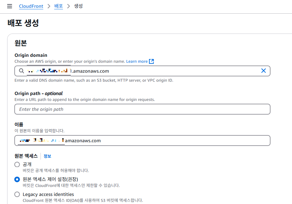 1. CloudFront์์ ๋ฒํท์ ๋ํ ๋ฐฐํฌ๋ฅผ ์์ฑํ๋ค.