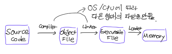 => ๊ฒฐ๊ณผ๋ฌผ์ด ์ํ๋ OS์ CPU์ ๋ฐ๋ผ ๋ค๋ฅธ ํํ์ ํ์ผ์ ๋ง๋ฆ.