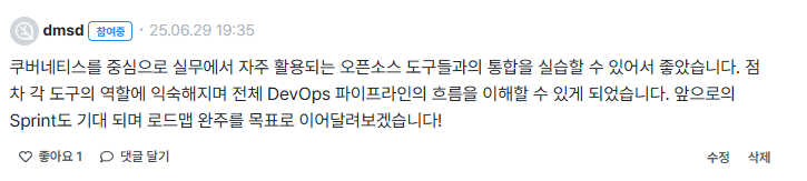 DevOps ์ํ๊ณ๋ฅผ ๊ฒฝํํด๋ณผ ์ ์์๋ค๋ ๊ฒ์ด ๊ฐ์ฅ ์ข์์ต๋๋ค.