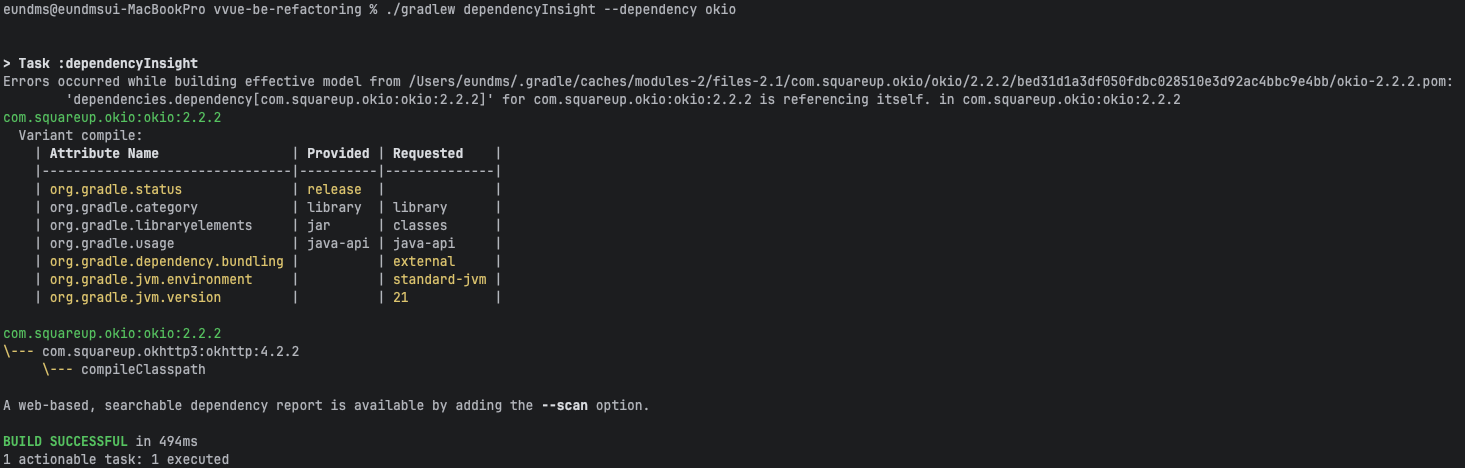 ./gradlew dependencyInsight --dependency ์ถ์ ํ๊ณ ์ถ์๋ผ์ด๋ธ๋ฌ๋ฆฌ